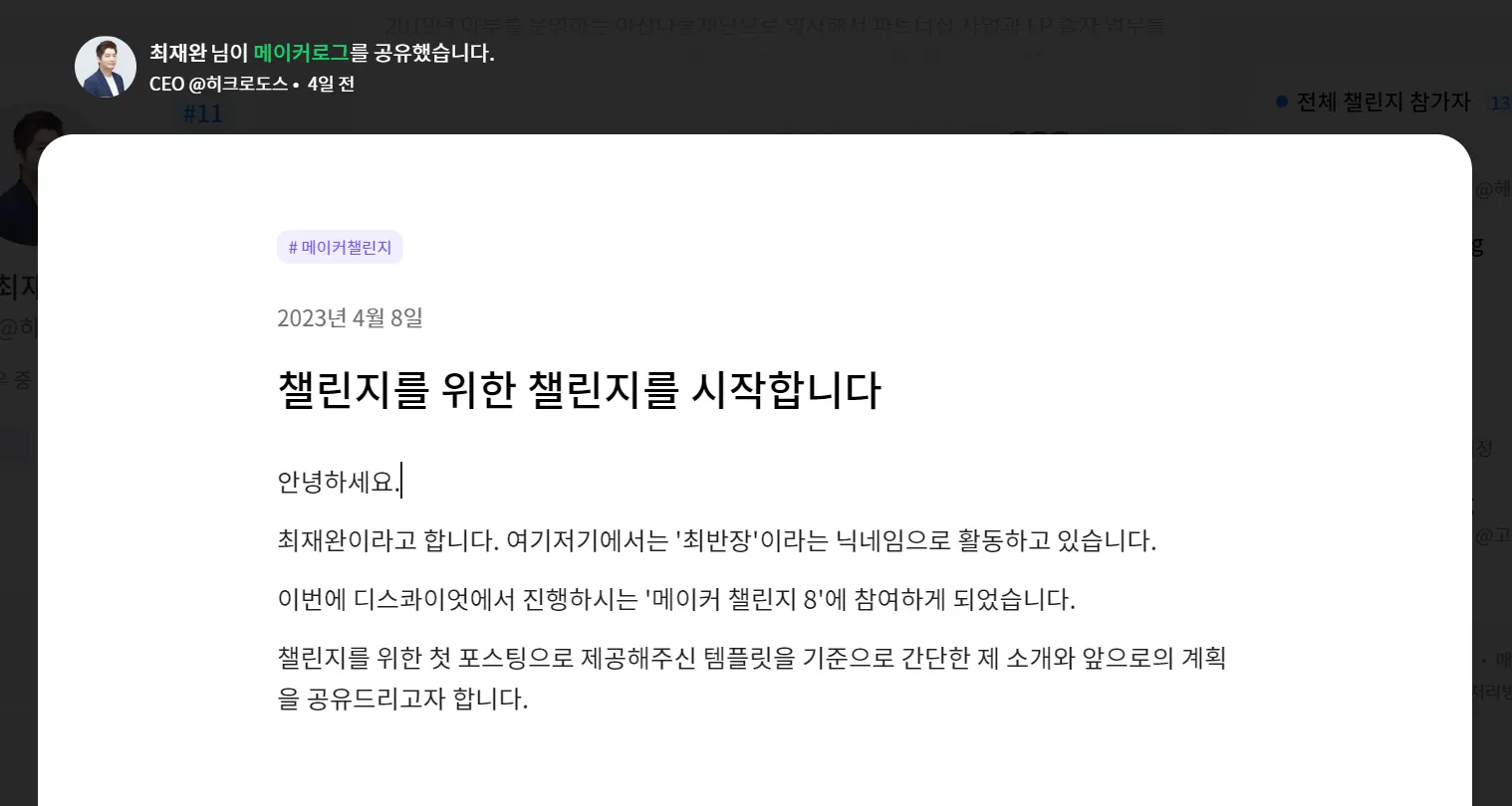 챌린지를 위한 첫 포스팅으로 제공해주신 템플릿을 기준으로 간단한 제 소개와 앞으로의 계획을 공유드리고자 합니다.